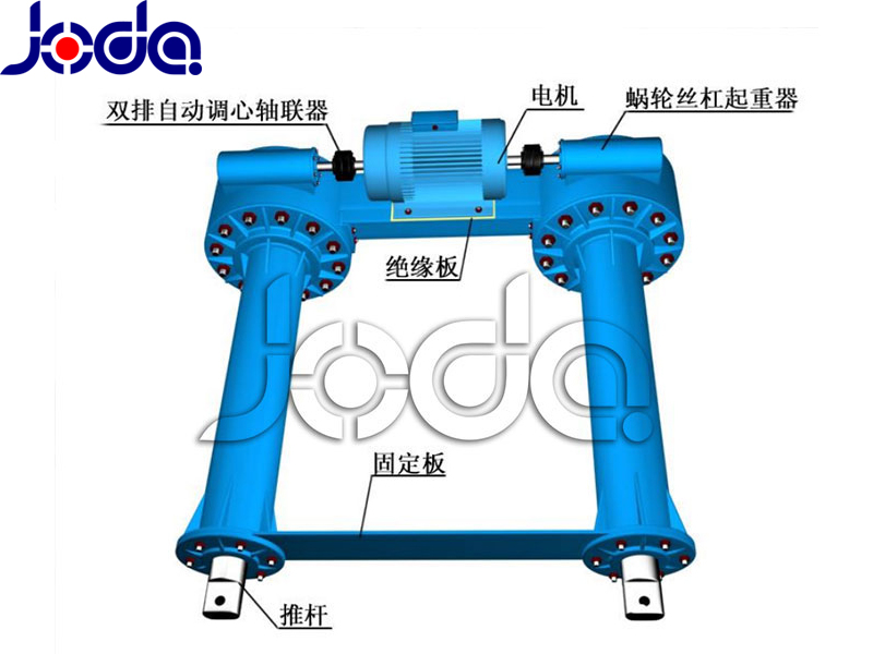 - 滾珠絲杠起重器由蝸輪、蝸桿、滾珠絲杠、減速箱體、筒體等組成,左、右滾珠絲杠起重器由中間一臺電機提供動力,此電機帶電磁制動,可以在停機時立即剎車,防止母線下滑。