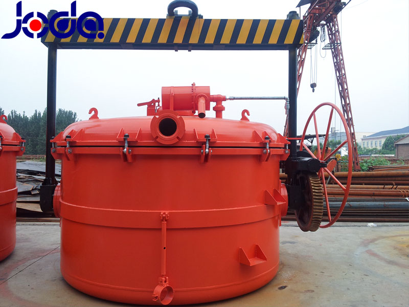由于裝運(yùn)的是高溫液體鋁液,真空抬包的內(nèi)襯需要砌筑耐火材料,澆注料是高鋁質(zhì)耐火材料,耐高溫不低于1580℃。