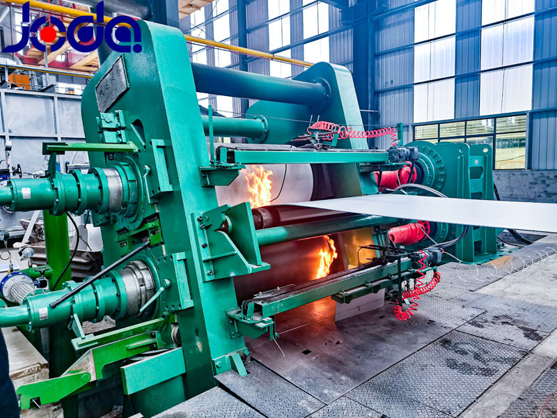 通過(guò)火焰噴涂系統(tǒng)在鑄軋輥表面不斷噴上具有分離和潤(rùn)滑作用的炭粉,防止鋁液粘輥。